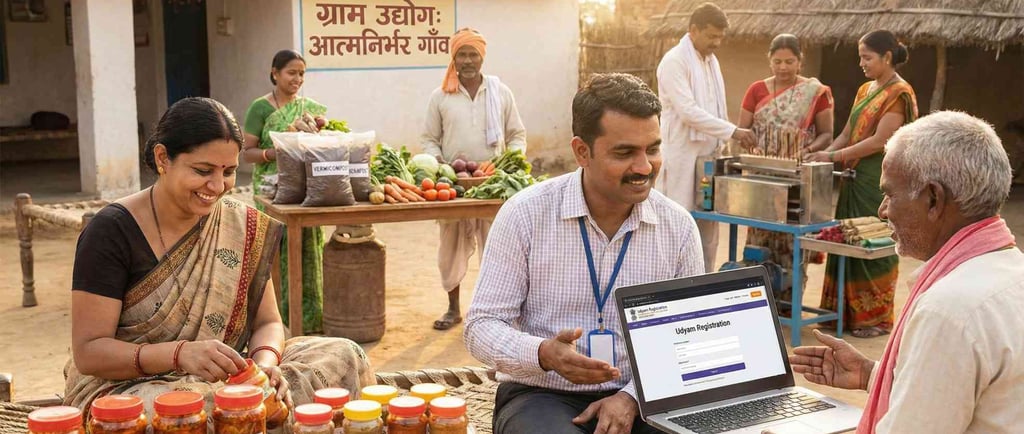 अक्सर हम सोचते हैं कि पैसा कमाने के लिए शहर जाना ज़रूरी है, लेकिन आज तस्वीर बदल चुकी है। भारत सरकार की "वोकल फॉर लोकल" (Vocal for Local) पहल और ग्राम उद्योग योजनाओं ने गाँव में बिज़नेस करना बहुत आसान बना दिया है। चाहे आप किसान हों, गृहिणी हों या पढ़े-लिखे युवा, आज गाँव में रहकर भी आप लाखों कमा सकते हैं।